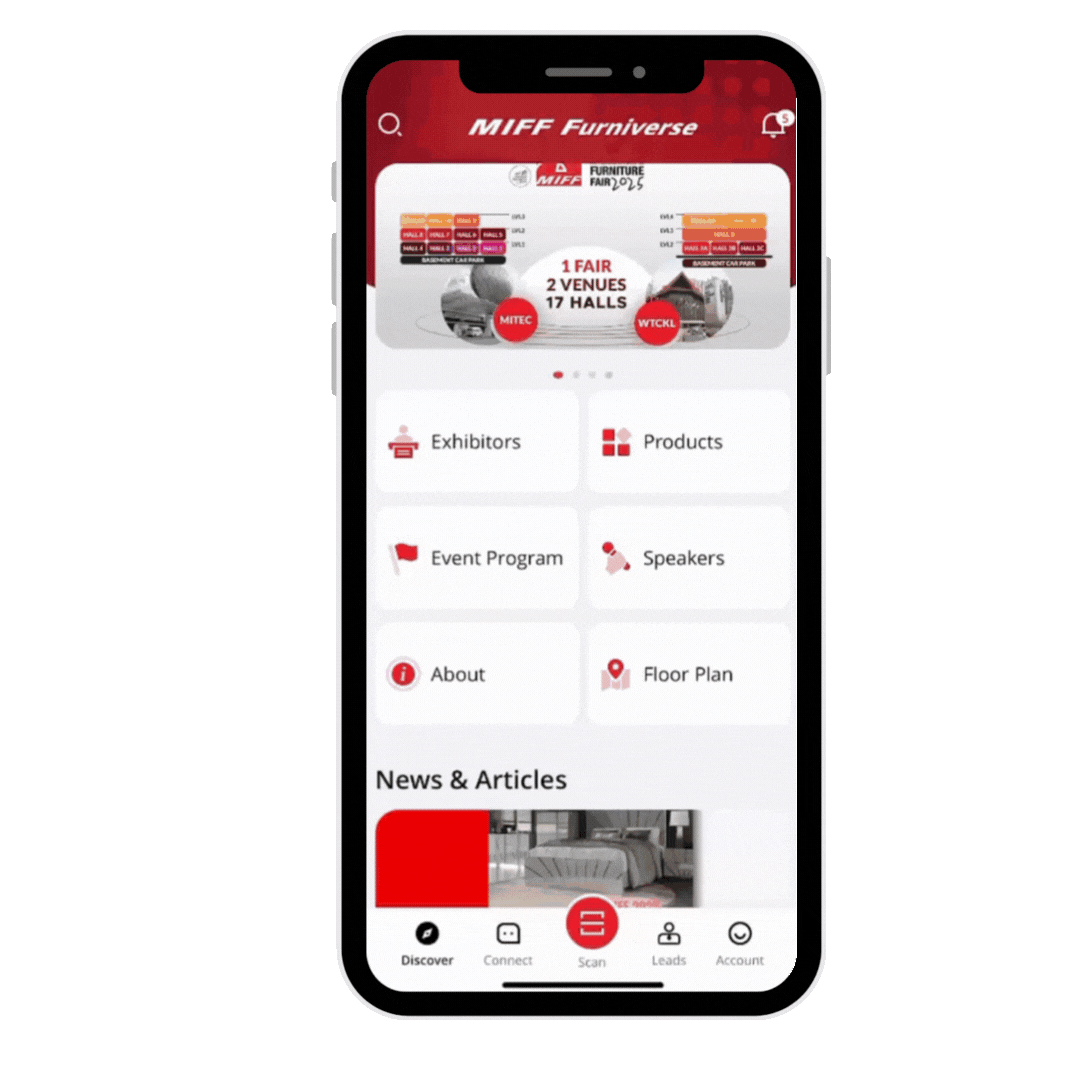 Visitors can expect exhibitors to use MIFF Furniverse app to scan their visitor badges and retrieve profile information digitally.