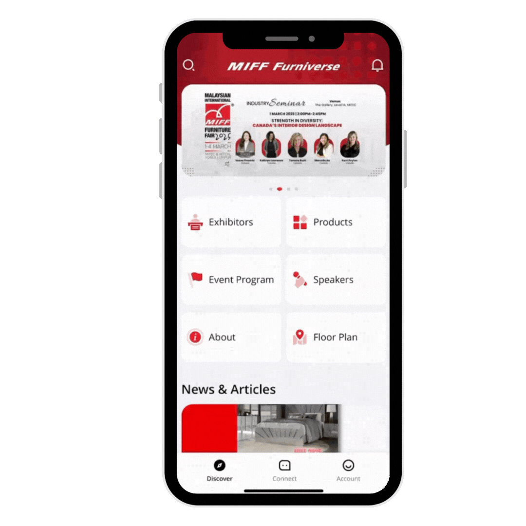 Experience the enhanced exploration and seamless connectivity with MIFF Furniverse, your virtual companion for MIFF 2026. This all-in-one digital platform connects exhibitors and visitors, offering a digital space to browse products, engage in conversations, and access valuable industry insights.